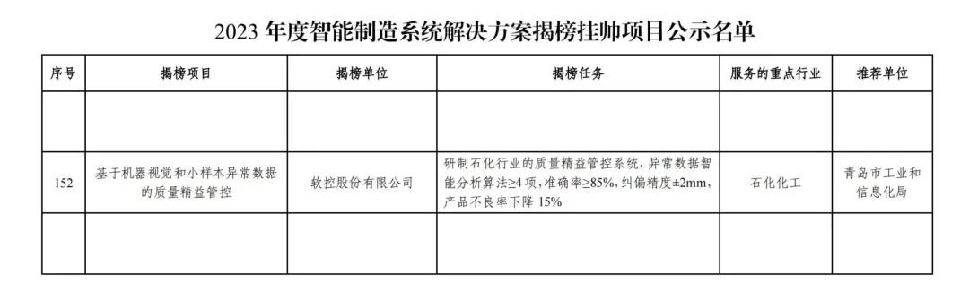 近日,6686(官方)登录入口 - 6686(中国)的“基于机器视觉和小样本异常数据的质量精益管控”成功入选国家工信部“2023年度智能制造系统解决方案揭榜挂帅项目”。