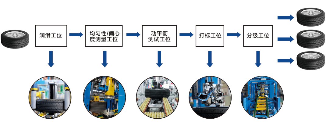 PUB系列轮胎动平衡/均匀性联机线是检验轮胎质量的关键设备,主要用于对轿车、轻卡子午线轮胎的动平衡、均匀性、尺寸偏差及凹凸度进行全自动在线测量。