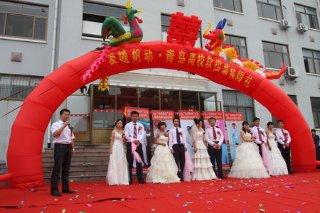 鞭炮齐鸣锣鼓闹,金狮起舞祥云绕。9月20日,青岛6686登录入口“爱随帆动”集体婚礼隆重举行。在这个收获的季节里,五名年轻员工也收获了各自的爱情,与爱侣喜结连理。公司领导及全体员工共同为他们的爱情作了见证。