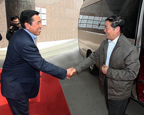 4月28日,国家工业和信息化部党组成员、副部长杨学山一行在青岛市委常委、副市长牛俊宪,四方区委书记纪敏,四方区区长张杰等相关领导的陪同下,到国家轮胎工艺与控制工程技术研究中心(简称“中心”)参观考察。中心主任、公司董事长袁仲雪,中心副主任、副董事长张焱等领导热情接待了杨学山一行。