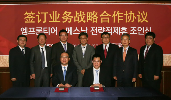 10月23日,6686登录入口与韩泰轮胎全资子公司Emfrontier(EMF)公司在韩国首尔签订了旨在建立战略合作伙伴关系的《合作意向书》,6686登录入口常务副总裁郑江家与EMF公司总经理安在焕代表双方签约。双方将在IT解决方案、工厂自动化、物流自动化三个领域内展开深度合作,在全球范围内共同开发市场。