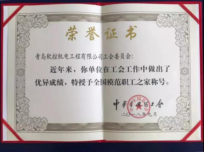 “全国模范职工之家”荣誉称号是由中华全国总工会设立,是全国工会系统表彰先进集体的最高荣誉,也是国家对基层工会工作的最高褒奖,公司首次获此殊荣,也是胶州唯一一家获得该项荣誉的工会。