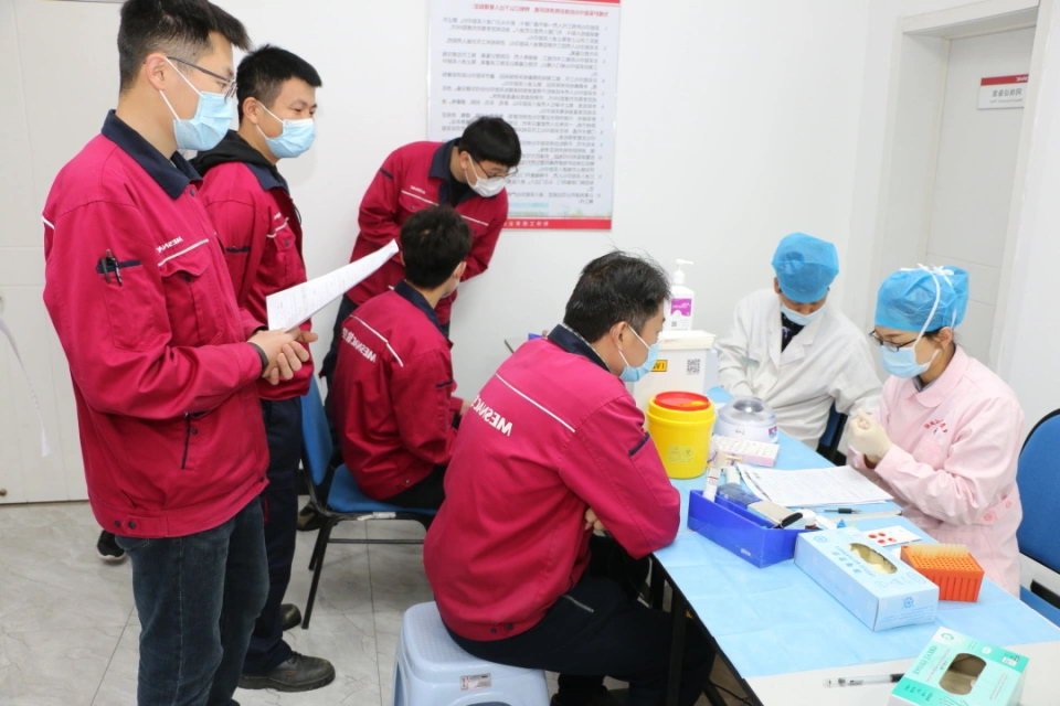 5月13日,在6686登录入口工会的组织下,“不忘初心、热血战疫”无偿献血活动在6686登录入口胶州产业园进行。青岛市中心血站爱心献血车一大早驶进了6686登录入口装备产业园,虽然下着蒙蒙细雨,但丝毫没有影响无偿献血职工的热情。上午九时大家准时来到现场,在工会志愿者的组织和医务人员的引导下,认真填写《无偿献血登记表》。经过测量血压、采血化验等检查,大家挽起袖子步入采血车,让点点爱心涓涓汇聚。短短3个小时,共有56名6686登录入口人踊跃献血18500毫升。