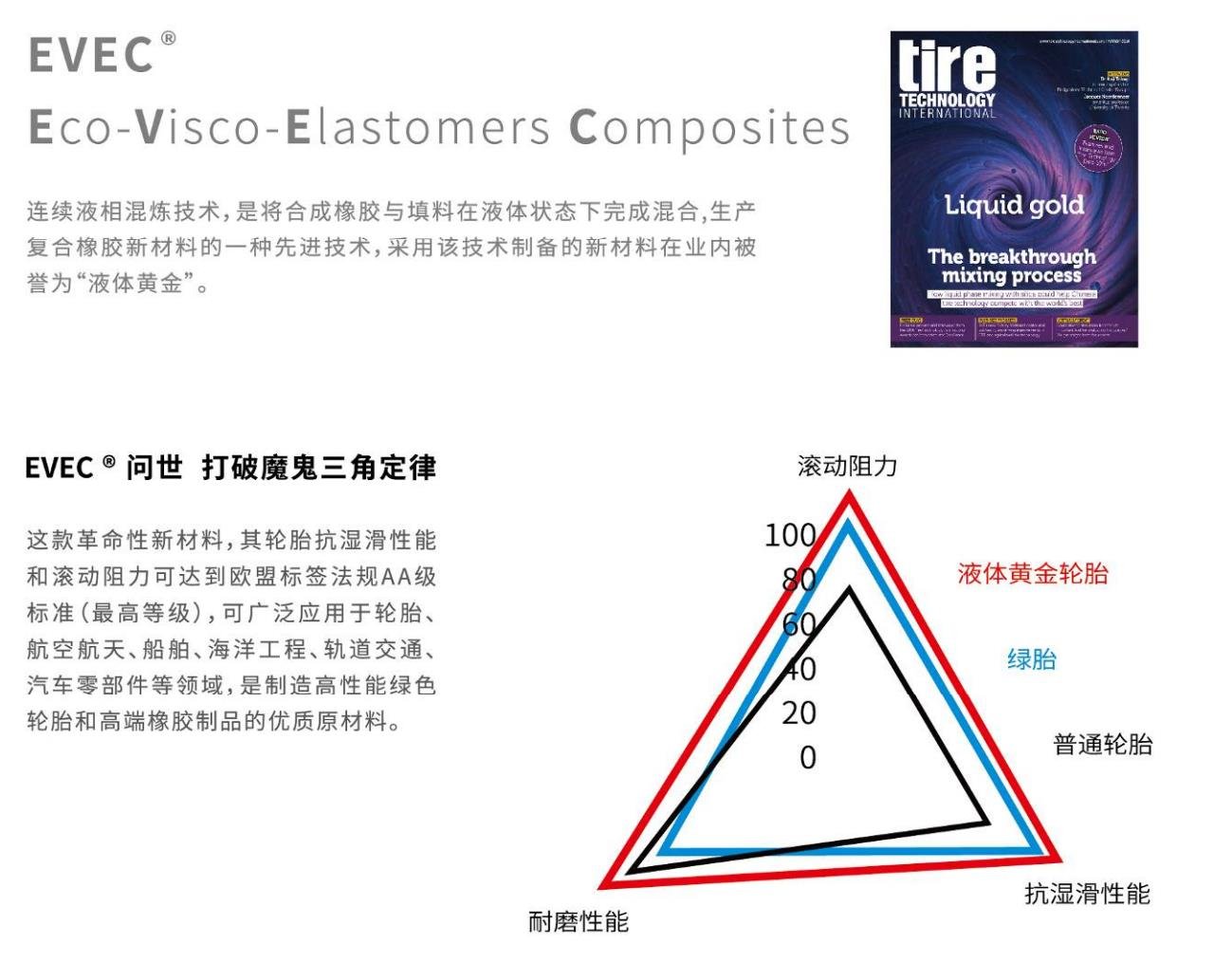 这款革命性新材料,其轮胎抗湿滑性能和滚动阻力可达到欧盟标签法规 AA 级标准 (最高等级),可广泛应用于轮胎、航空航天、船舶、海洋工程、轨道交通、汽车零部件等领域,是制造高性能绿色轮胎和高端橡胶制品的优质原材料。